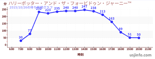 • ハリーポッター・アンド・ザ・フォービドゥン・ジャーニー™$B$N(B2015年10月26日の待ち時間