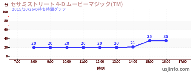 • セサミストリート 4-D ムービーマジック(TM)$B$N(B2015年10月26日の待ち時間