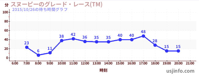 • スヌーピーのグレード・レース(TM)$B$N(B2015年10月26日の待ち時間
