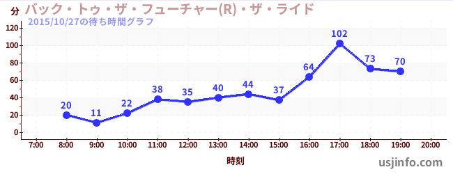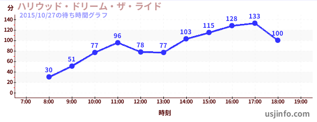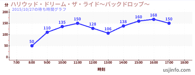 • ハリウッド・ドリーム・ザ・ライド〜バックドロップ〜$B$N(B2015年10月27日の待ち時間