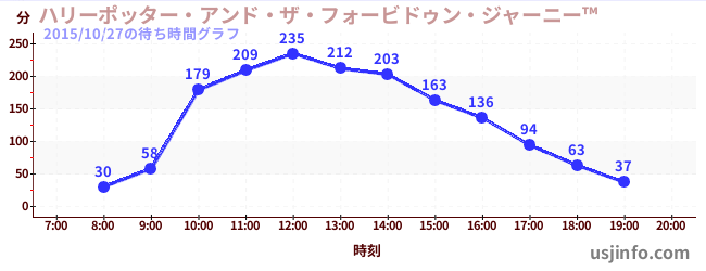 • ハリーポッター・アンド・ザ・フォービドゥン・ジャーニー™$B$N(B2015年10月27日の待ち時間