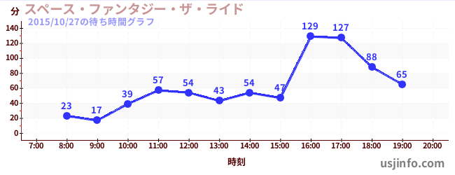 • スペース・ファンタジー・ザ・ライド$B$N(B2015年10月27日の待ち時間