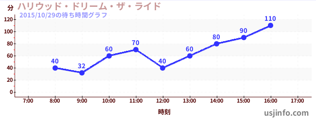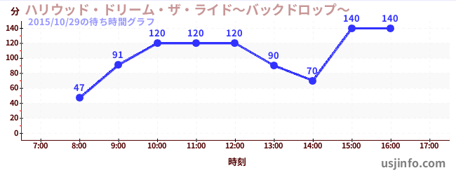 • ハリウッド・ドリーム・ザ・ライド〜バックドロップ〜$B$N(B2015年10月29日の待ち時間