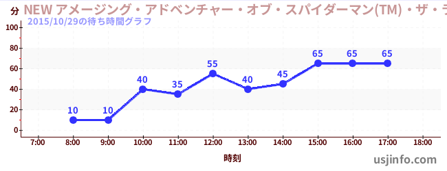 • NEW アメージング・アドベンチャー・オブ・スパイダーマン(TM)・ザ・ライド 4K3D$B$N(B2015年10月29日の待ち時間