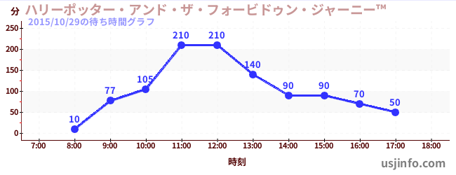 • ハリーポッター・アンド・ザ・フォービドゥン・ジャーニー™$B$N(B2015年10月29日の待ち時間