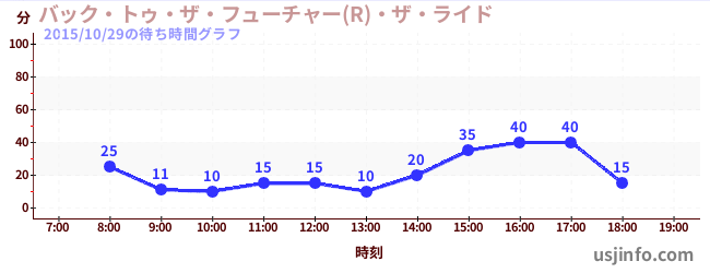 • バック・トゥ・ザ・フューチャー(R)・ザ・ライド$B$N(B2015年10月29日の待ち時間