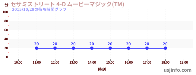 • セサミストリート 4-D ムービーマジック(TM)$B$N(B2015年10月29日の待ち時間