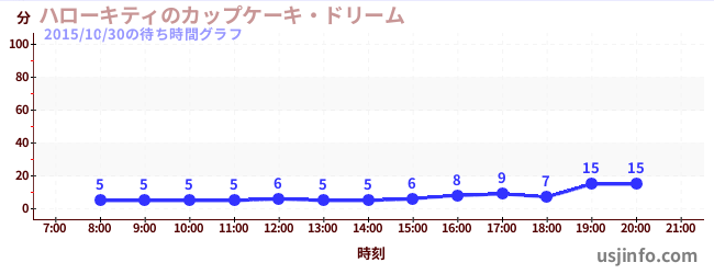• ハローキティのカップケーキ・ドリーム$B$N(B2015年10月30日の待ち時間