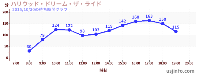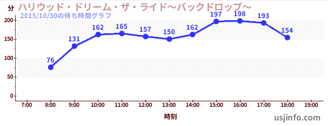 • ハリウッド・ドリーム・ザ・ライド〜バックドロップ〜$B$N(B2015年10月30日の待ち時間