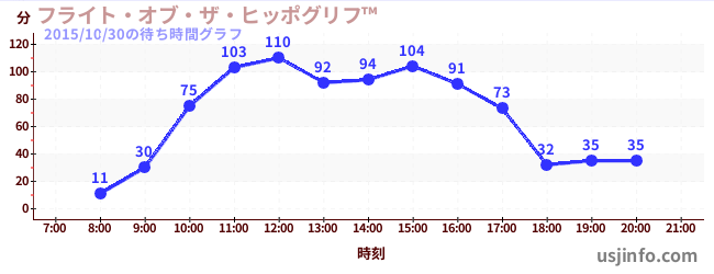 • フライト・オブ・ザ・ヒッポグリフ™$B$N(B2015年10月30日の待ち時間