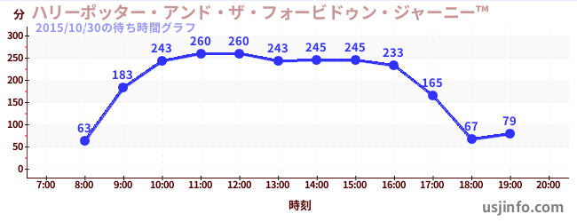 • ハリーポッター・アンド・ザ・フォービドゥン・ジャーニー™$B$N(B2015年10月30日の待ち時間