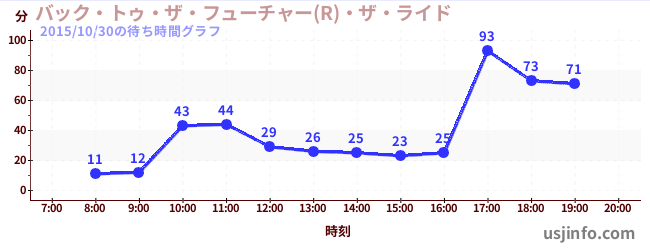 • バック・トゥ・ザ・フューチャー(R)・ザ・ライド$B$N(B2015年10月30日の待ち時間
