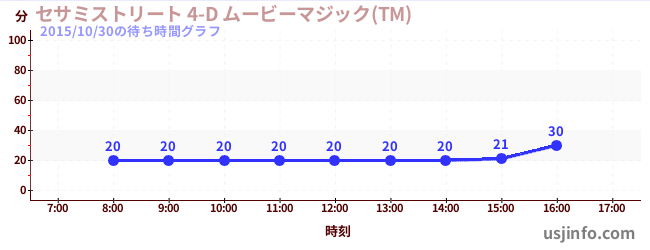 • セサミストリート 4-D ムービーマジック(TM)$B$N(B2015年10月30日の待ち時間