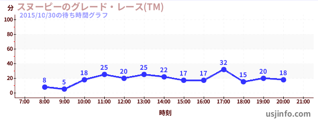 • スヌーピーのグレード・レース(TM)$B$N(B2015年10月30日の待ち時間