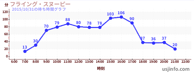 • フライング・スヌーピー$B$N(B2015年10月31日の待ち時間