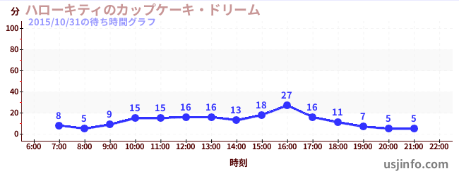 • ハローキティのカップケーキ・ドリーム$B$N(B2015年10月31日の待ち時間