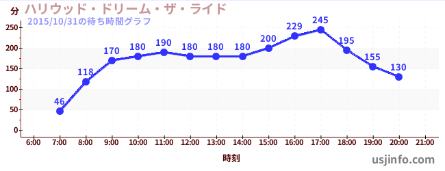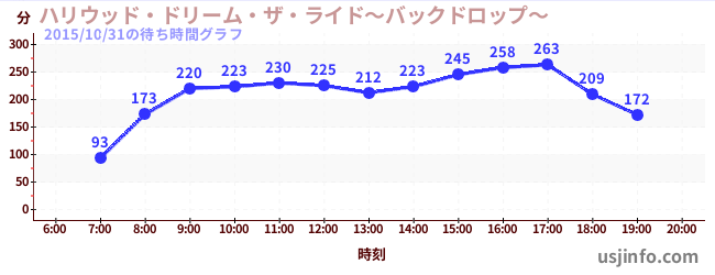 • ハリウッド・ドリーム・ザ・ライド〜バックドロップ〜$B$N(B2015年10月31日の待ち時間