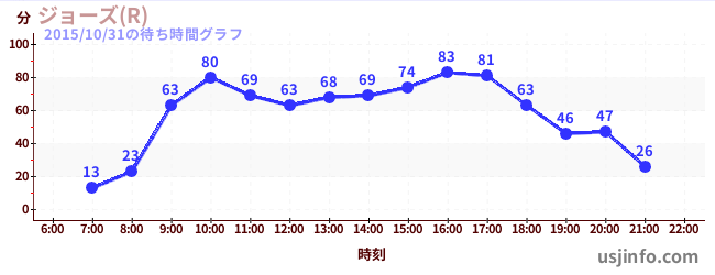 • ジョーズ(R)$B$N(B2015年10月31日の待ち時間