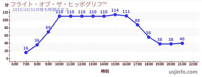 • フライト・オブ・ザ・ヒッポグリフ™$B$N(B2015年10月31日の待ち時間