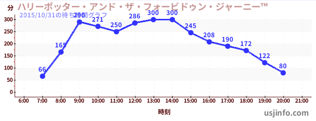 • ハリーポッター・アンド・ザ・フォービドゥン・ジャーニー™$B$N(B2015年10月31日の待ち時間