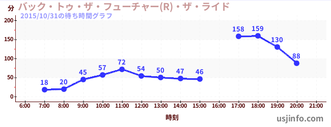 • バック・トゥ・ザ・フューチャー(R)・ザ・ライド$B$N(B2015年10月31日の待ち時間