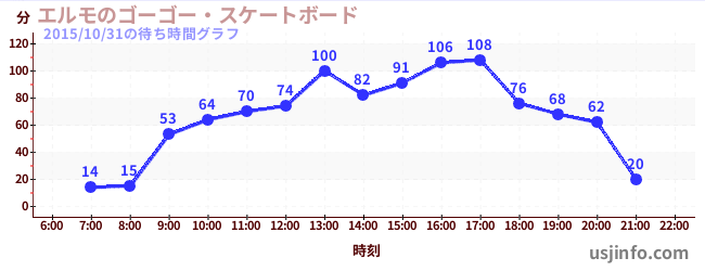 • エルモのゴーゴー・スケートボード$B$N(B2015年10月31日の待ち時間