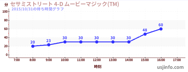 • セサミストリート 4-D ムービーマジック(TM)$B$N(B2015年10月31日の待ち時間
