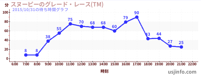 • スヌーピーのグレード・レース(TM)$B$N(B2015年10月31日の待ち時間
