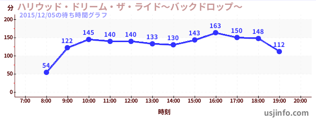 • ハリウッド・ドリーム・ザ・ライド〜バックドロップ〜$B$N(B2015年12月05日の待ち時間