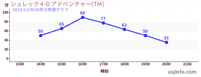 • シュレック 4-D アドベンチャー(TM)$B$N(B2015年12月05日の待ち時間