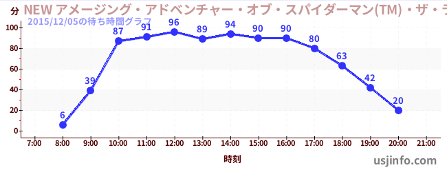 • NEW アメージング・アドベンチャー・オブ・スパイダーマン(TM)・ザ・ライド 4K3D$B$N(B2015年12月05日の待ち時間