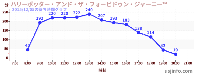 • ハリーポッター・アンド・ザ・フォービドゥン・ジャーニー™$B$N(B2015年12月05日の待ち時間