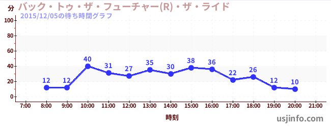 • バック・トゥ・ザ・フューチャー(R)・ザ・ライド$B$N(B2015年12月05日の待ち時間