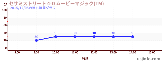 • セサミストリート 4-D ムービーマジック(TM)$B$N(B2015年12月05日の待ち時間