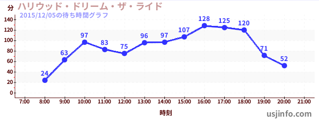 • ハリウッド・ドリーム・ザ・ライド$B$N(B2015年12月05日の待ち時間