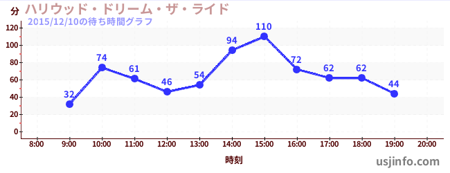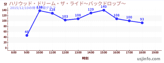• ハリウッド・ドリーム・ザ・ライド〜バックドロップ〜$B$N(B2015年12月10日の待ち時間