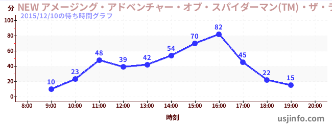 • NEW アメージング・アドベンチャー・オブ・スパイダーマン(TM)・ザ・ライド 4K3D$B$N(B2015年12月10日の待ち時間