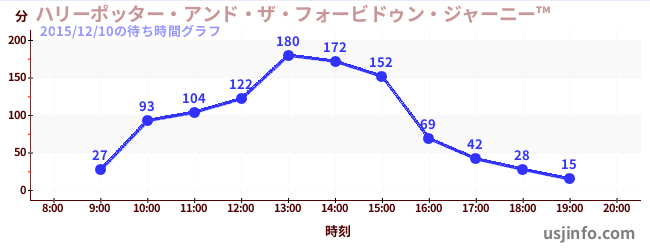 • ハリーポッター・アンド・ザ・フォービドゥン・ジャーニー™$B$N(B2015年12月10日の待ち時間