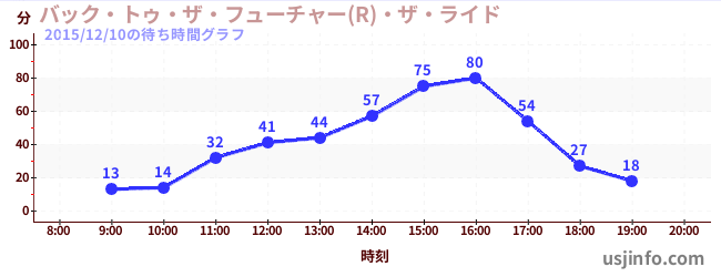 • バック・トゥ・ザ・フューチャー(R)・ザ・ライド$B$N(B2015年12月10日の待ち時間