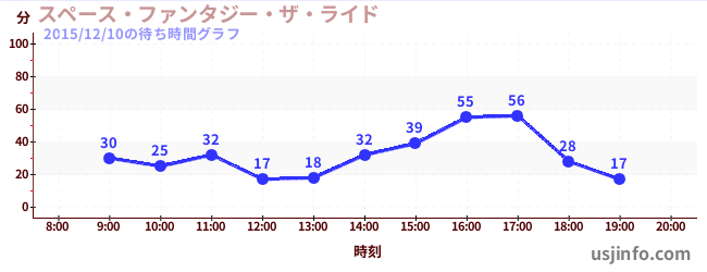 • スペース・ファンタジー・ザ・ライド$B$N(B2015年12月10日の待ち時間