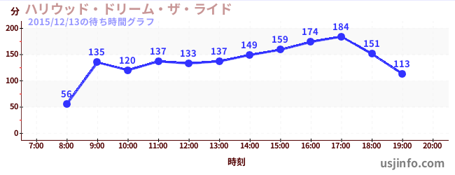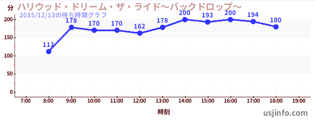 • ハリウッド・ドリーム・ザ・ライド〜バックドロップ〜$B$N(B2015年12月13日の待ち時間