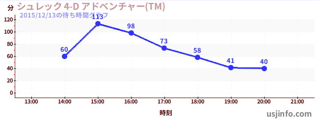 • シュレック 4-D アドベンチャー(TM)$B$N(B2015年12月13日の待ち時間