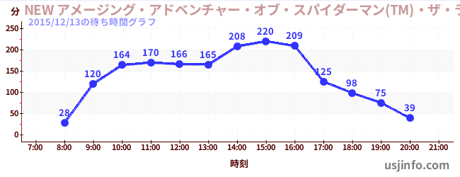 • NEW アメージング・アドベンチャー・オブ・スパイダーマン(TM)・ザ・ライド 4K3D$B$N(B2015年12月13日の待ち時間