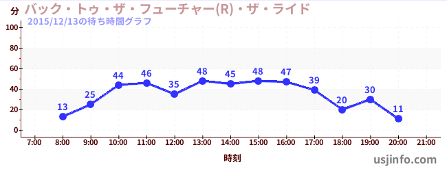 • バック・トゥ・ザ・フューチャー(R)・ザ・ライド$B$N(B2015年12月13日の待ち時間