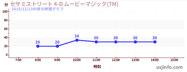 • セサミストリート 4-D ムービーマジック(TM)$B$N(B2015年12月13日の待ち時間