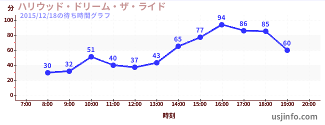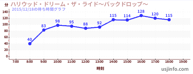 • ハリウッド・ドリーム・ザ・ライド〜バックドロップ〜$B$N(B2015年12月18日の待ち時間
