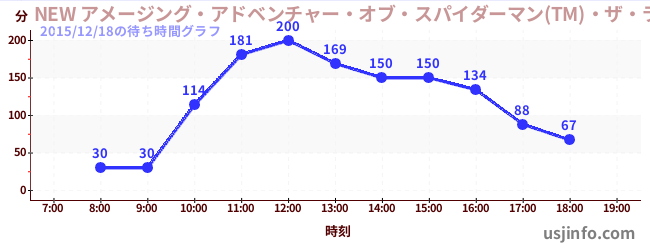 • NEW アメージング・アドベンチャー・オブ・スパイダーマン(TM)・ザ・ライド 4K3D$B$N(B2015年12月18日の待ち時間