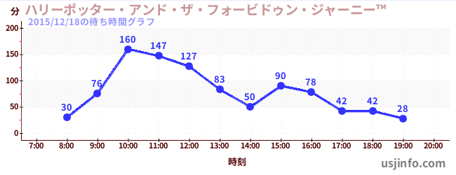 • ハリーポッター・アンド・ザ・フォービドゥン・ジャーニー™$B$N(B2015年12月18日の待ち時間