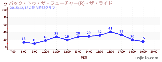 • バック・トゥ・ザ・フューチャー(R)・ザ・ライド$B$N(B2015年12月18日の待ち時間