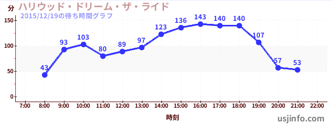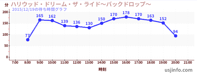 • ハリウッド・ドリーム・ザ・ライド〜バックドロップ〜$B$N(B2015年12月19日の待ち時間